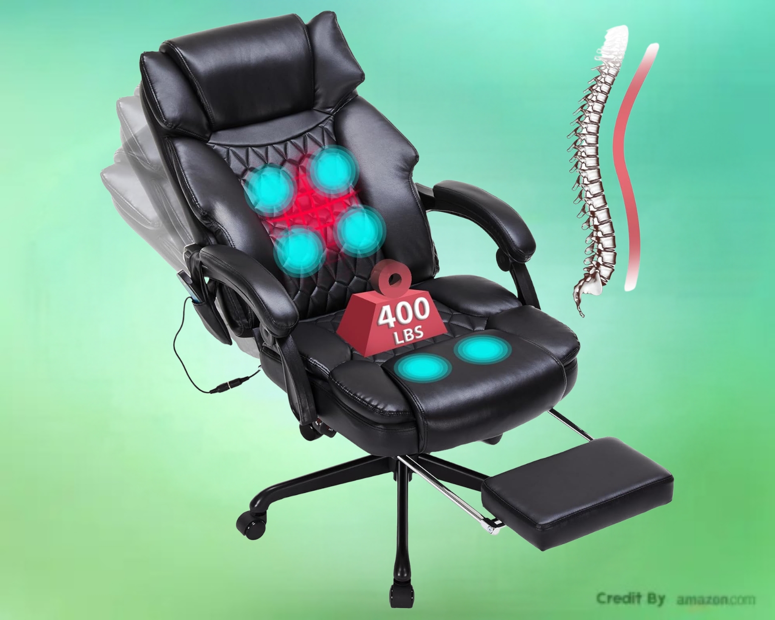 The heating function warms up to 120°F, improving circulation and easing stiffness. The reclining backrest (90°–135°) and retractable footrest make it easy to switch between working and relaxing. Plus, with a 400 lb weight capacity and reinforced steel frame, it’s built to last.